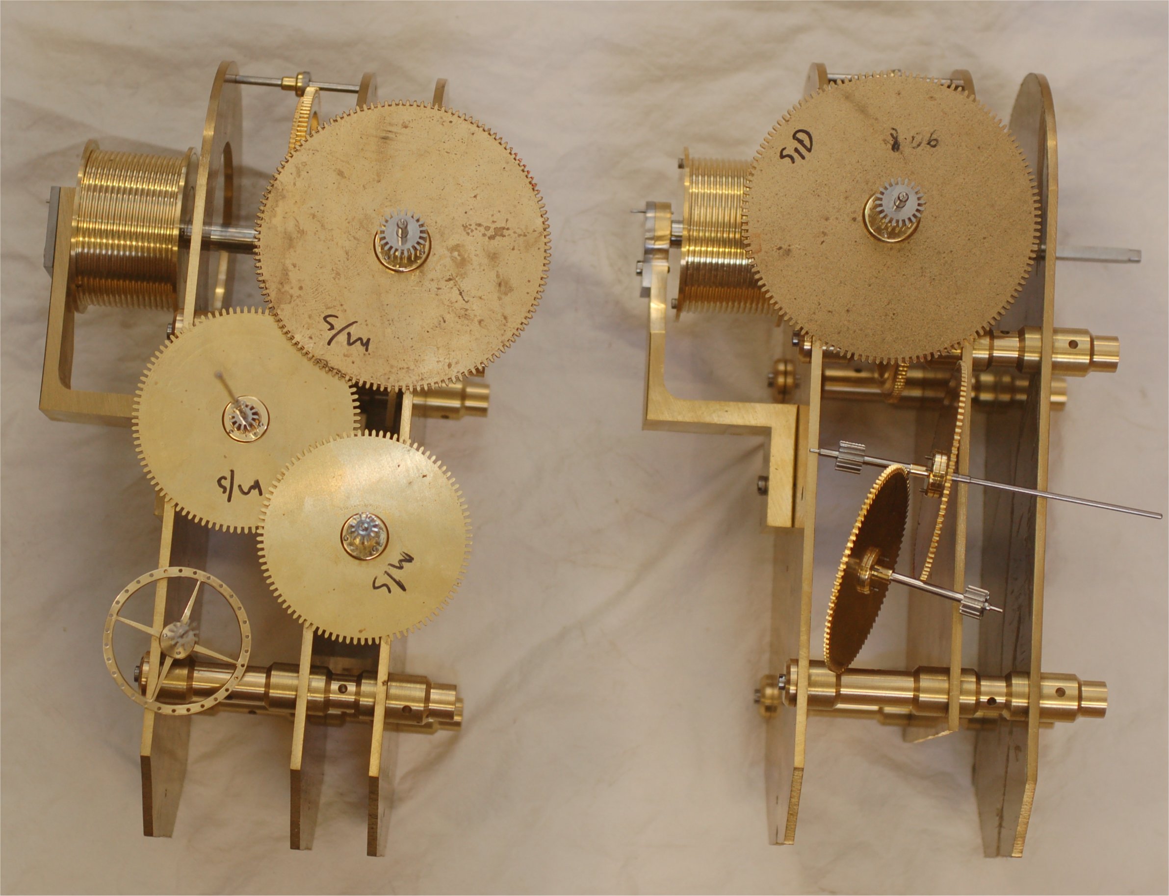 Trains 1; This is where the week began, with the arbors and pinions made and the collets and wheels fitted to the arbors for both movements.